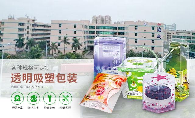 协成胶盒厂有限公司成立于1988年,为香港著名透明包装制品之生产商,我们于中国深圳.平湖自建厂房30000多平方米,并引进欧、美、日等地的先进机械设备,如全新700系列的曼罗兰八色、九色柯式印刷机、日本“樱井“丝网印刷机等系列先进机械设备,公司拥有大批技术人才,产品质量荣获ISO9001:2008国际认可证书,产品出口遍及全球。